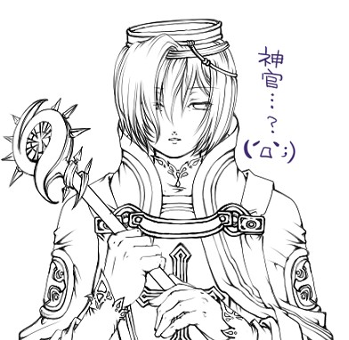 お題は「神官」です。……自分で選んでおきながら、ファンタジーで「神官」と呼ばれる人たちがどんなお洋服をお召しになっているか解らない…!神官って言ったら、ド●クエのク●フトか、王家の■章のカ■ター大神官くらいしか浮かんでこないんですが…(両方マニアック極まりない!